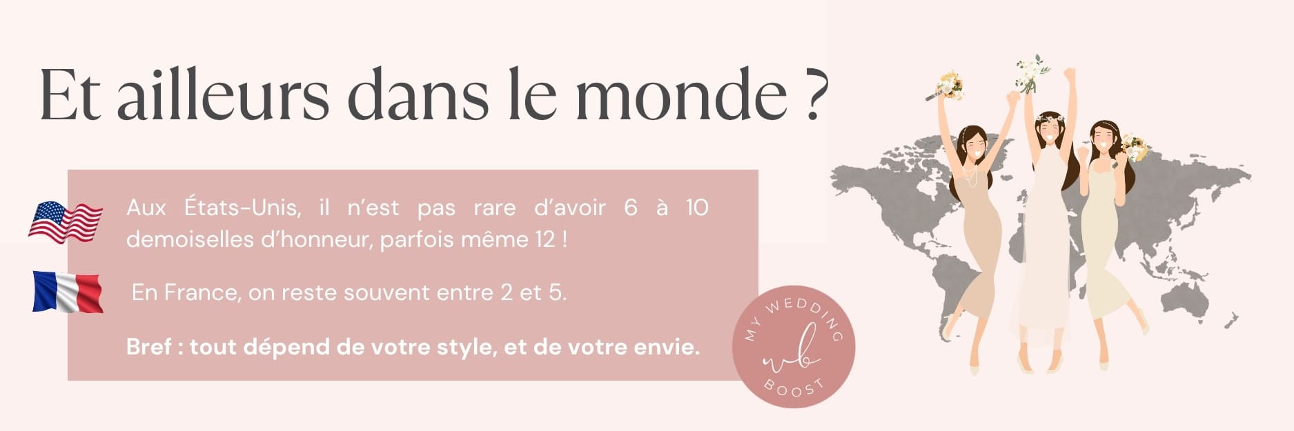 • Il n’existe pas de règle stricte : que vous ayez 0, 2 ou 12 demoiselles d’honneur, c’est votre choix.